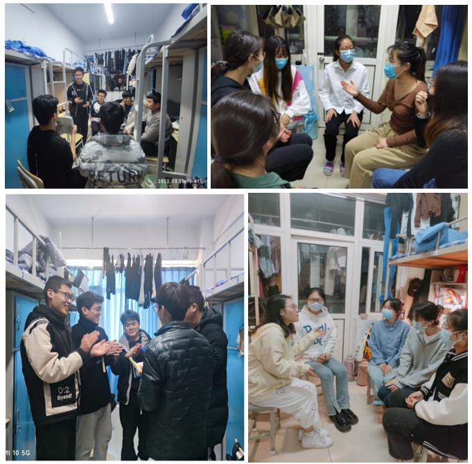各宿舍舍长组织同学们进行活动,学生们互相倾诉自身烦恼,谈谈自封校以来做出的改变和努力,分享疫情防控以来的感受和体会。在交流之中,同学们对疫情有了新的理解,也更加团结。