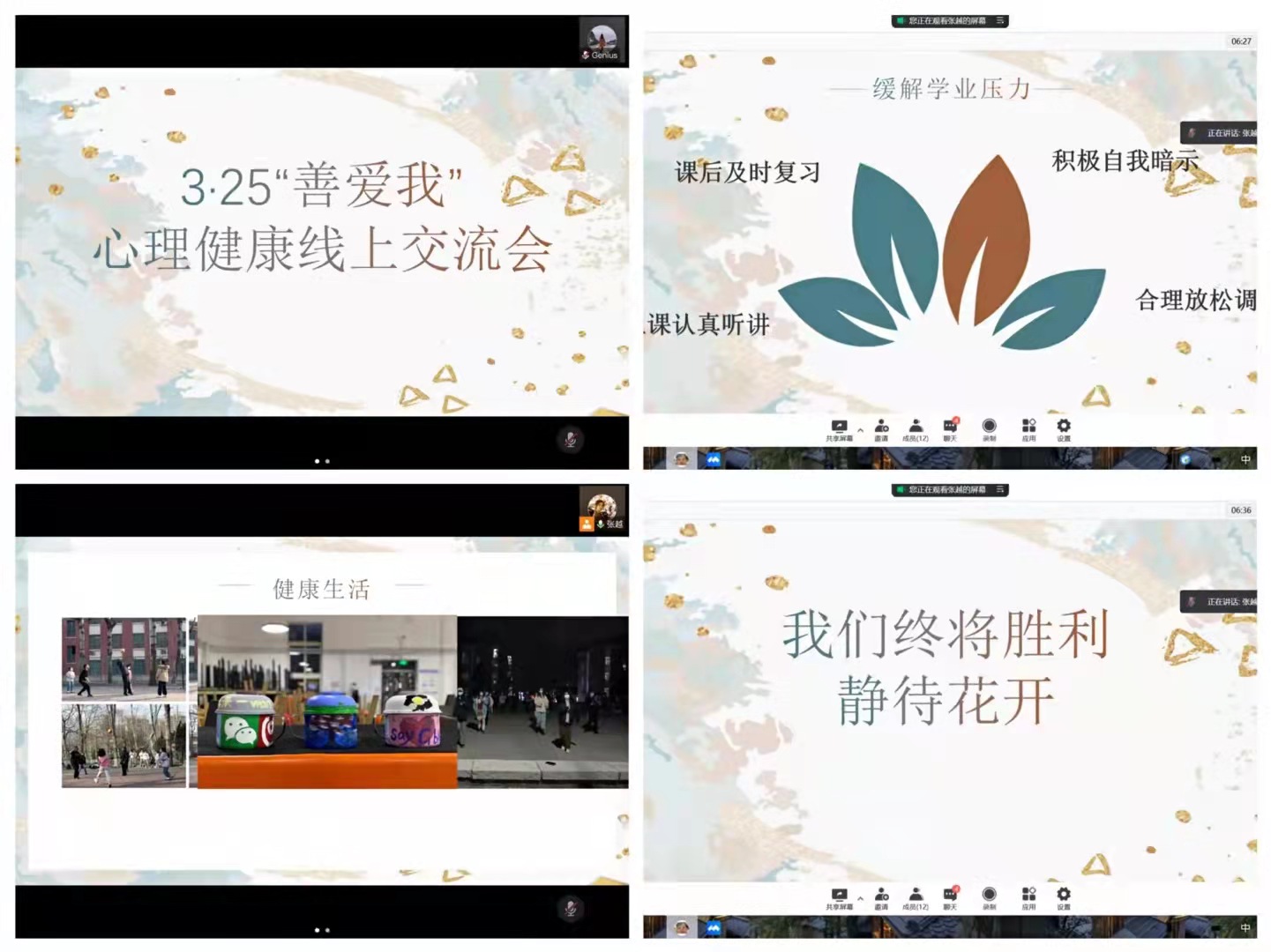 本次“善爱我”主题心理活动,旨在让同学们缓解疫情期间的紧张氛围,尽快适应和接受新的学习方式,让同学们在封校的状态下也能尽情享受生活,享受春天,以积极健康的心态迎接未来的每一天。