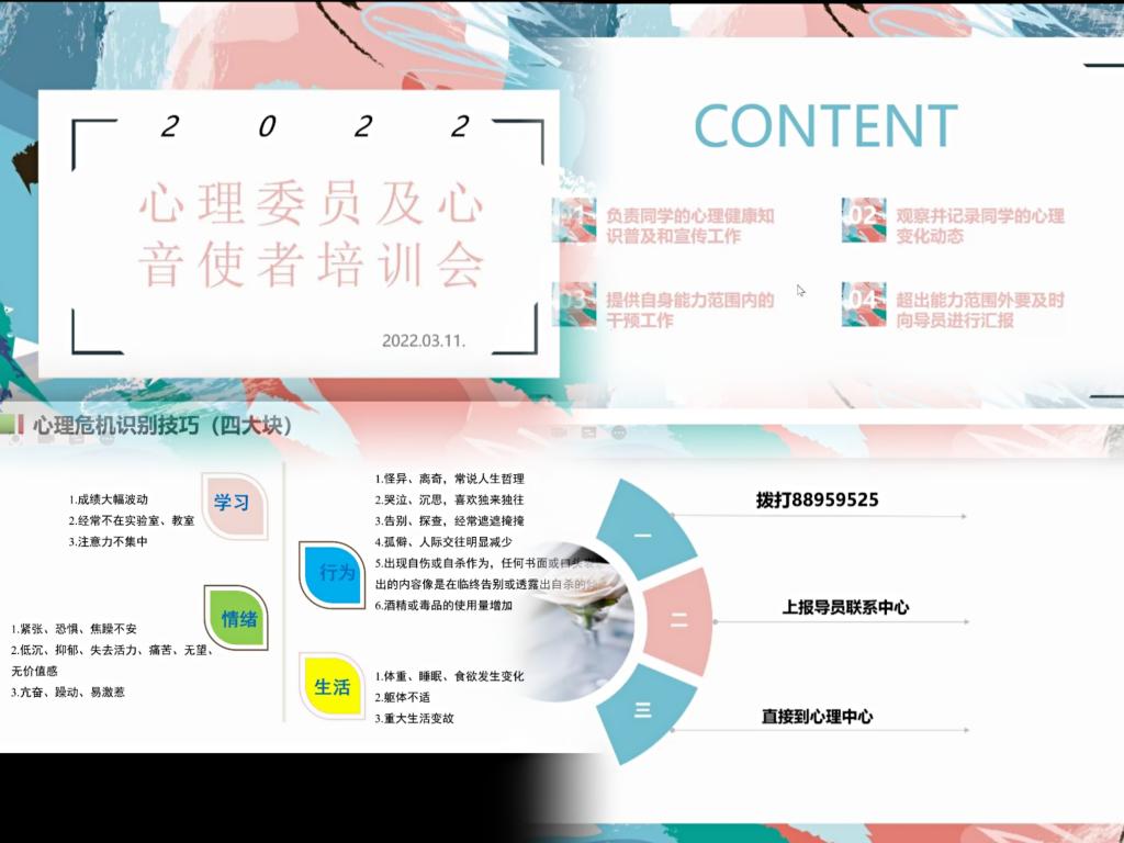 为落实心理健康中心进一步关注学生心理健康的要求提高外国语学院心音使者与各位宿舍长发现同学们心理问题的能力外国语学院于311日开展了宿舍长及心音使者线上培训会