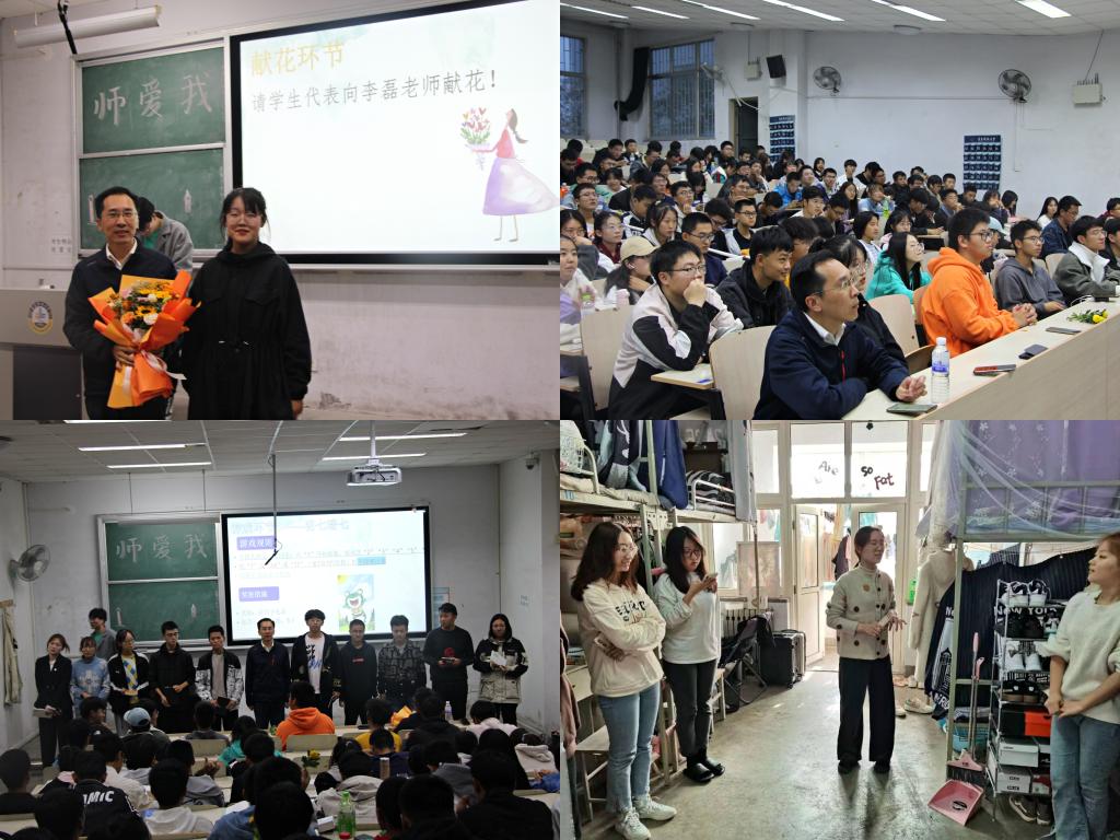 π之约——宿舍心连心,活动中学工办老师来到学生宿舍,亲切了解学生的学习、生活情况,并与同学进行交流,勉励同学们学好专业知识,淬炼“π”品格,传承“π”文化,做担当民族复兴大任的时代新人。学工办老师与学生开展了“师爱我活动互动,观看了”我心目中的老师视频,参加活动的学生向老师献花表达对老师的感谢。