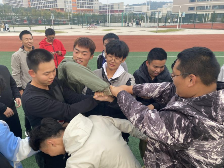 在新生辅导员李林的带领下,2021级材料4-8班积极互动,通过齐心共进-拔河比赛、同心千千结等团辅活动放松了学生身心,让同学们在活动中体会到了团体的舒适感和安全感,拉近了师生间的距离,同时也增强了班级的凝聚力和同学之间的友谊。