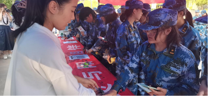 随后,面向大一新生开展化学院心理健康协会制作的心理健康教育知识宣传册的发放和主题签名。宣传册主要宣传大学生常见心理问题及应对措施,介绍心理健康教育日的基本情况。普及学校心理健康咨询的具体渠道和方式。学生们在便签纸上写下自己对大学生活的憧憬与感悟,在横幅上署名,并积极地询问心理健康的有关知识。