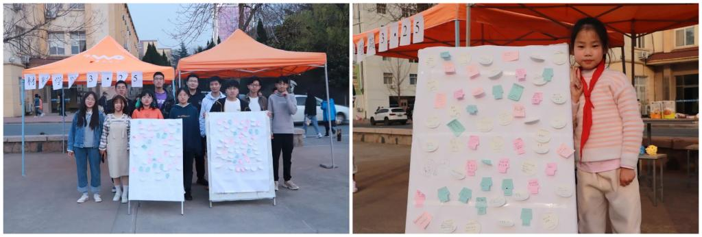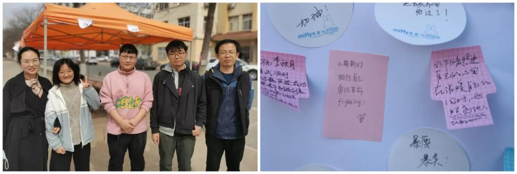 材料学院团委书记逄柏鹏老师和20级辅导员潘超超老师也参加到活动当中,把对同学们的祝福写下来粘贴到了展览板上,“让阳光照进自己的心里,在温暖自己的同时也照亮他人的心”。