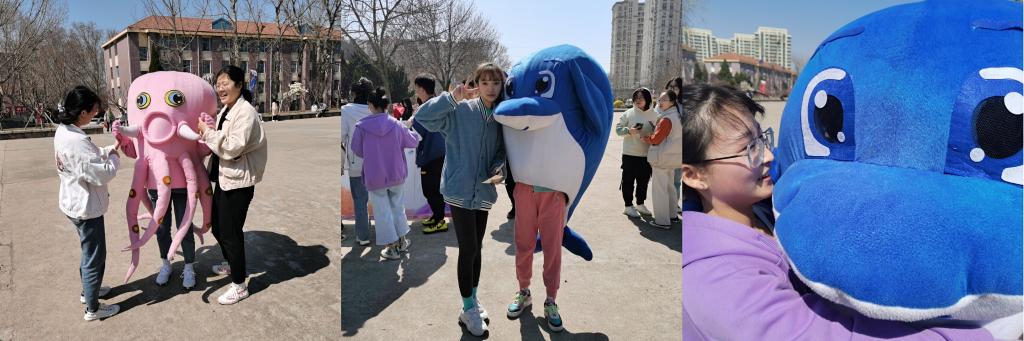 用“善”意的拥抱,相拥“善”良的我。为帮助学生缓解开学压力,以更积极饱满的姿态展开新学期的学习生活,海洋学院在3月25日,组织海洋学子着学院吉祥物服装与学院其他同学温暖相拥,击掌合影。以适当的肢体接触相互表达善意,让同学感受到海洋学院浓浓的温情。同时,海洋学院学生在小五四广场竖起“善待自己,关爱他人——心愿墙”,通过书写心愿的方式帮助同学们抒发内心真实的想法,缓解心理压力的同时传递出自己美好的祝愿。