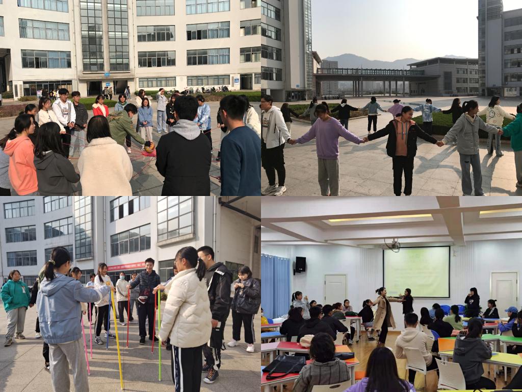 此次团辅以专业为单位开展,专门针对新生入学以来的适应性问题进行专题团辅活动,活动分为室内和户外两部分。其中,室内活动设置“雨点变奏曲”“大风吹”“滚雪球”“大学环游记”等4个环节,通过切合00后特点的游戏引领同学们跳出原有的“交际舒适圈”,变换团队组成,加强成员之间的熟悉度、配合度和向心力;户外活动设置“心有千千结”“鼓舞人心”“神笔马良”等3个环节,从陌生到熟悉,从羞涩胆怯到默契配合,同学们齐心协力完成了一个又一个的挑战,在欢声笑语的氛围中逐渐学会团结协作、积极沟通的作用。财务管理专业的肖洋同学感慨说道:“此次新生团体辅导拉近了我们彼此间的距离,减少了隔阂与陌生,增进了集体凝聚力和荣誉感,为未来大学四年的学习与生活注入了一份动力与温暖。”2CB0D