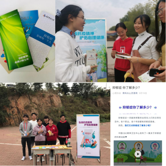 充分利用线上和线下两个宣传阵地,采用集中阐述和分散渗透相结合的方式,将抑郁症相关病理、症状表现、防治措施等进行最大程度地宣传普及,提高在校师生的知晓率。面向辅导员、班主任导师开展专题讲座3场,印制《抑郁症防治手册》、《返校复学心理小贴士》等宣传手册5万余份、微信公众号发布推文10余篇,并将相关知识纳入心理健康必修课教学内容中,切实提升学校师生对抑郁症的认识,减少偏见与歧视。学校心音心理健康协会还以第29个“世界精神卫生日”为契机,于10月10日在4个校区分发各类心理健康知识宣传手册,开展科普宣讲,提高师生对心理健康的重视程度,增强心理调适技能。