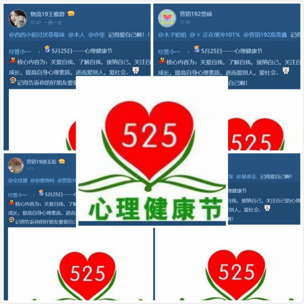 为切实做好疫情期间学生心理健康教育工作,经管学院借助“5.25”全国大学生心理健康日,开展以“悦纳自我,阳光成长”为主题的系列心理健康教育活动,促进同学养成关爱自我、了解自我,不断提高自身心理素质。