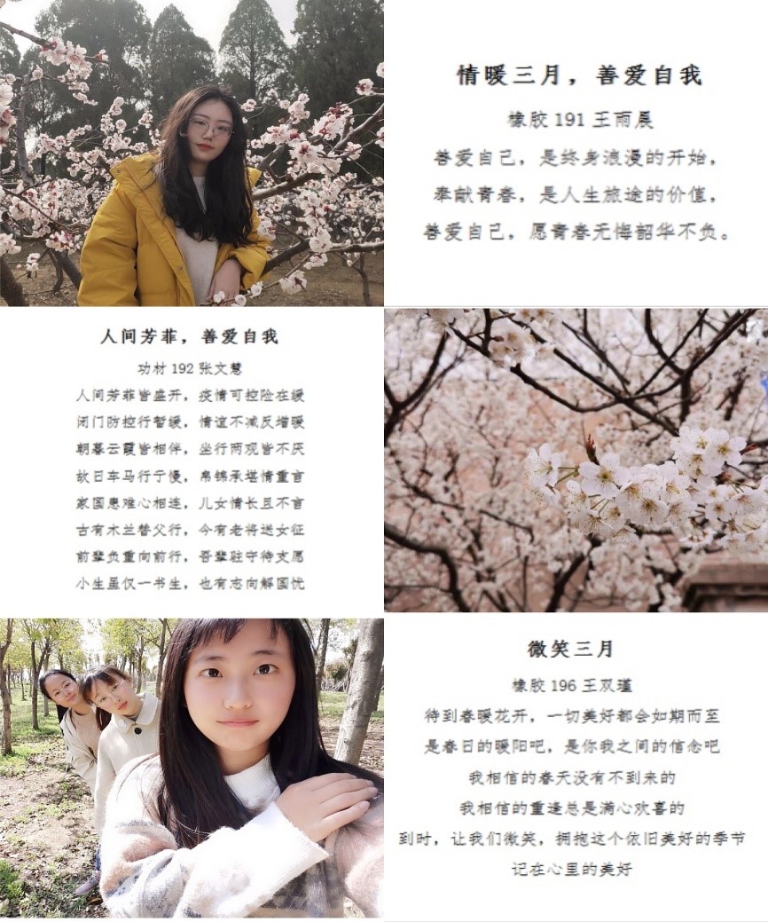 2020年新春伊始,一场突如其来的新冠肺炎疫情改变了我们的庚子叙事轨迹,亦如蝴蝶振翅般改变了世界的节奏。为引导每一位抗疫战场上的青年大学生,在残酷疫情的洗礼中更好去感受生命,思考生活,用积极乐观的心理品质消除焦虑,战胜恐慌,在“3·25善爱我”生命教育日到来之际,高分子学院面向全院学生开展了“奉献青春,善爱自我”主题生命教育活动,旨在倡导同学们在疫情期间用乐观传递正能量,用奉献彰显青春担当。