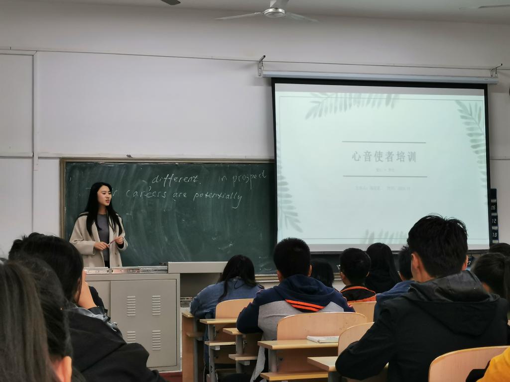 心音使者是传播心理健康知识的宣传员,是学校心理教育工作中的一支重要队伍。此次培训主要从四方面展开,一是简单讲述简单的心理学知识,二是让同学们了解心音使者的职责于义务,三是心音使者的主要任务,四是心音使者当遇到突发情况应该采取怎样的措施,最后介绍了学校心理咨询中心的具体情况。
