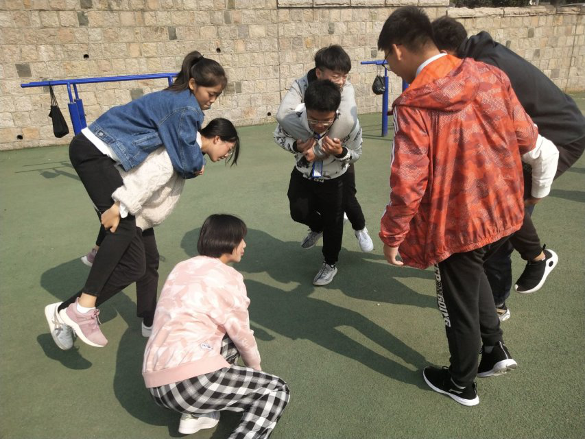 游戏环节:第一个游戏是团体挑战,是在团队成员的共同配合协调下,完成出题人员的题目。目的是培养同队成员的信任、团结以及集合团队的指挥,游戏过程中大家思考交流团队协作,有说有笑。第二个游戏是AK47,着重强调团队的协同配合及信任能力,要求队友们记住预先确定好的位置由最后一位同学展示最后的结果。大家集思广益步步为营,虽然开始有些许的困难但在总结了经验教训后,各组在比赛中都展示了优秀的团队能力。