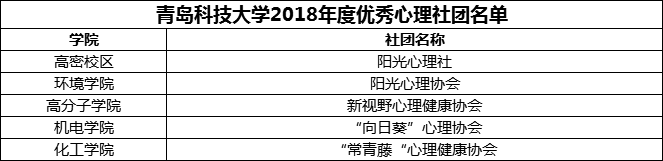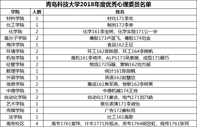 青岛科技大学2018年度优秀心理委员、优秀心理社团公示