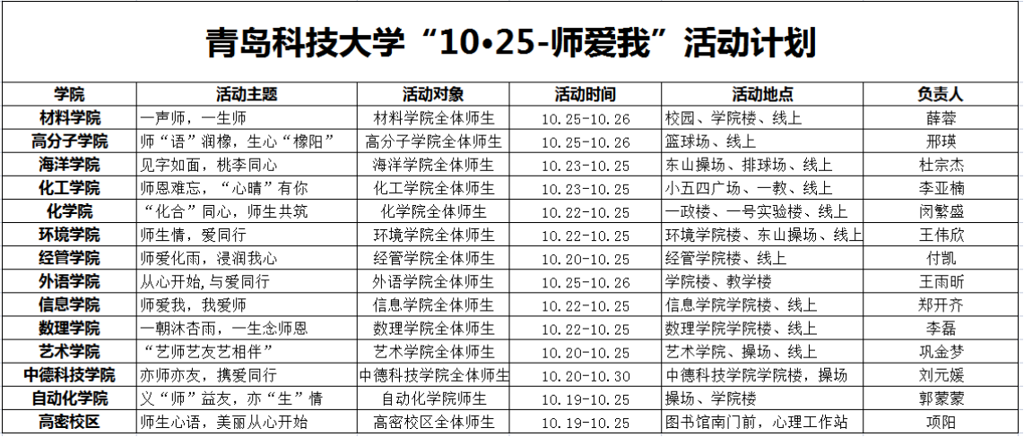 关于开展青岛科技大学2021年“10·25-师爱我”主题活动的通知