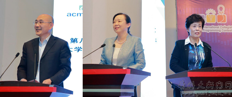 开幕式上,陈克正在致辞中对各位领导、裁判、教练和参赛选手们的到来表示热烈欢迎,对给予本次竞赛活动大力支持的友好单位表示衷心的感谢,并简要介绍了学校的基本情况。陈克正强调,科技竞赛是提升人才培养质量的重要途径,预祝各位参赛选手能够在比赛中赛出水平,取得优异成绩。邵峰晶代表计算机学会感谢青岛科技大学为大赛付出的全面、细致的准备,并预祝大赛取得圆满成功。冷严凌代表竞赛冠名赞助商浪潮集团,鼓励莘莘学子在ACM大赛中放飞梦想激扬青春,希望参赛队员珍惜这次难得的竞赛机会,团结协作、顽强拼搏,勇创佳绩。