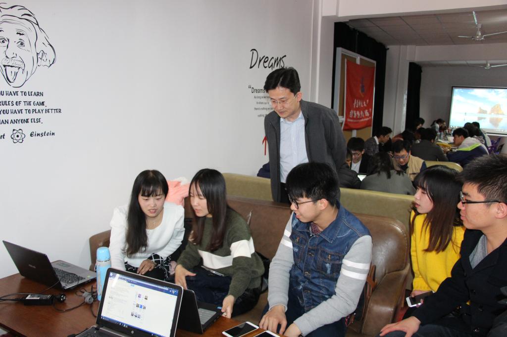 王锋业指出,希望同学们利用三天假期时间,集中精力完善作品,积极与指导老师进行沟通、交流,对作品进行再解剖,再拔高。对每一件作品,参赛者首先要做到心中有数,既要充分了解目前的国内外研究现状,又要对自己作品的优势、创新点了如指掌,团队成员定要优化整合,任务明确,将自己参赛作品的创新点充分展示出来。现场,王锋业还与部分参赛团队成员进行交流。