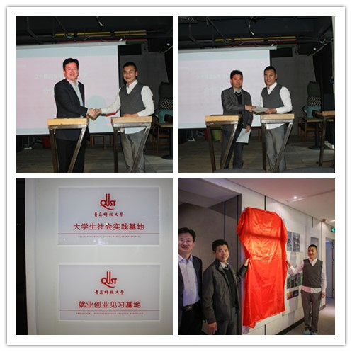 4月12日下午,青岛科技大学传播学院、青岛众合摆渡广告有限公司共建就业实习社会实践基地揭牌仪式举行。校团委书记王锋业、传播学院党总支书记王士卿、党总支副书记兼副院长曲明、艺术学院副院长曲国先、青岛众合摆渡广告有限公司总经理杨立春、副总王永坚参加了揭牌仪式并进行会谈。
