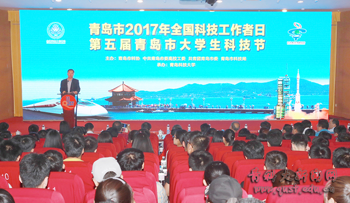 5月27日,青岛市2017年全国科技工作者日暨第五届青岛市大学生科技节开幕式在青岛科技大学崂山校区第三报告厅举行。青岛市委常委、市委高校工委书记邓云锋,中国科学院院士、中国科学院海洋研究所研究员胡敦欣,市科协党组书记、主席刘鹏照,青岛市委高校工委副书记李岷,共青团青岛市委副书记张宇,青岛科技大学校长马连湘、副校长陈克正等出席开幕式。