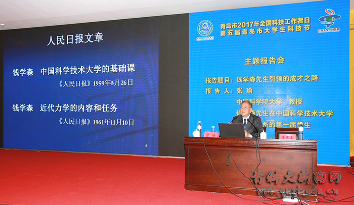 在主题报告会上,中国科学院大学张瑜教授作了题为《钱学森先生引领的成才之路》的报告,讲述“两弹一星”功勋奖章获得者钱学森先生献身祖国科研事业的事迹、真挚的爱国情怀和教育家的风范,深深感动了在场听众。