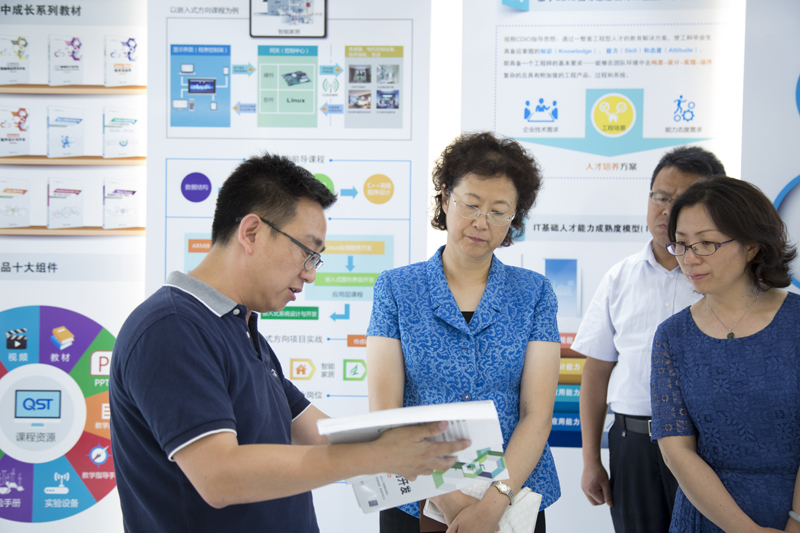 张淑华一行参观了合作企业青软实训总部并听取了企业方关于校企合作的发展汇报。青软实训董事长刘全汇报了青软实训的发展历程、办学思路、基地建设、教学资源建设、软硬教学平台建设等;软件学院企业方负责人徐美姣汇报了“校企深度融合、产学研协同育人”理念下的软件学院改革与探索,并详细汇报了实训室建设、多层次人才培养模式、实训教学和教研改革与探索等;青软实训CEO郭晓丹、锐聘学院史亚平分别就工程教育体系实践平台和平台内容建设作了工作汇报。