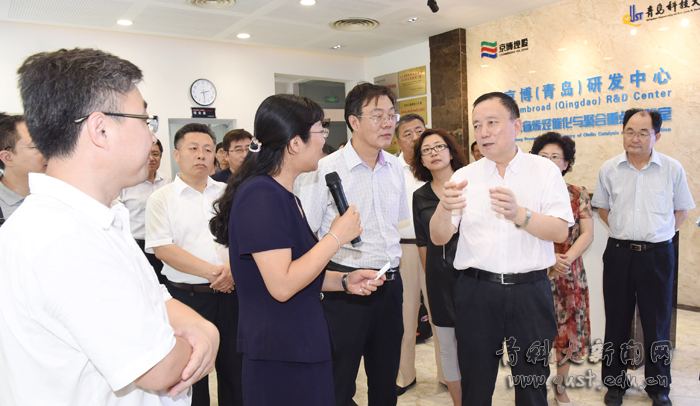 在京博(青岛)研发中心山东省烯烃催化与聚合重点实验室,督查组考察了青科大科技成果转化体制机制、校企合作运营模式等情况。重点实验室主任贺爱华教授向督查组介绍了全新反式弹性体橡胶、聚丁烯釜内合金两项首创的国际领先技术与材料,以及在京博集团进行成果转化助推企业技术革新和产业升级情况。