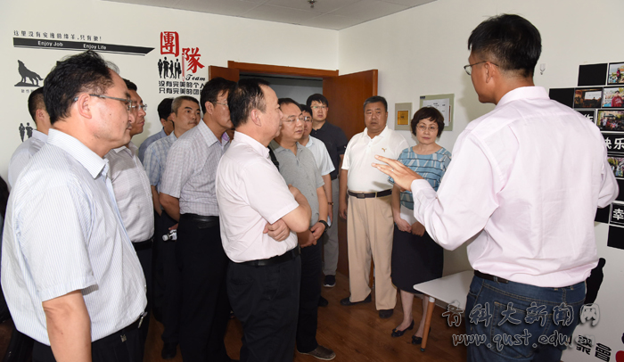 在国家大学科技园,督查组考察了青科大“文化引领、师生协同、学科创业”情况,现场与青岛睿帮信息技术有限公司创始人、从青科大毕业后攻读美国斯坦福大学博士的纪俊,青岛蓝皑环保节能有限公司总经理、青科大2014届毕业生阚士亮等学科性公司负责人代表进行了交流,着重就企业孵化模式、享受创业扶持政策、企业核心技术要素等进行了交流。