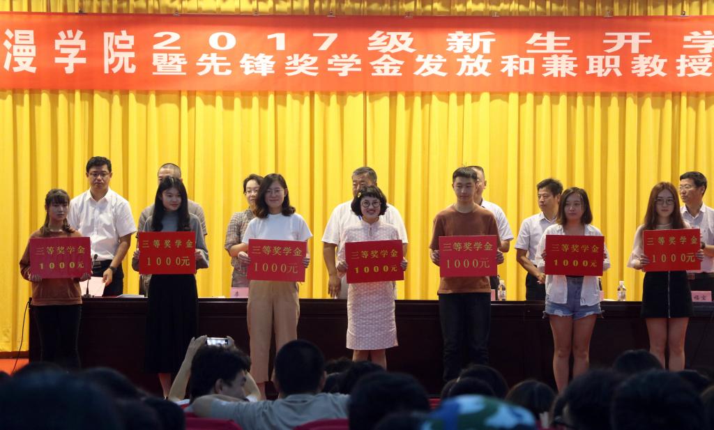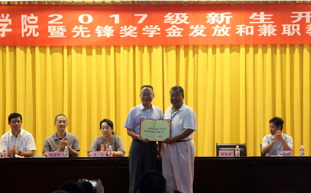 9月12日上午,传播与动漫学院2017级新生开学典礼暨先锋奖学金发放和兼职教授聘任仪式在第三报告厅举行。仪式上,校党委副书记张元利向贵阳宏立城集团副总裁宿东君先生颁发了兼职教授聘书,宿东君向传播学院递交了共建“国际大学生影视动漫创新创业”的合作协议,这标志着传播与动漫学院在创新创业教育和校企合作等方面又取得了新的成果。