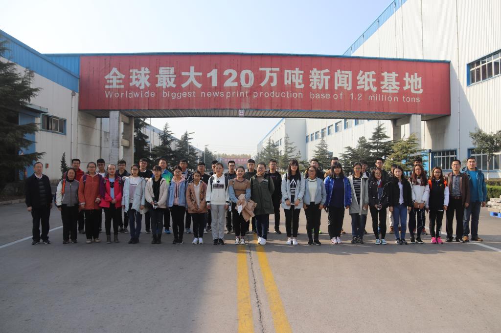11月5日,学院专门划拨实习经费,组织全体轻化工程专业新生赴东营120万吨新闻纸生产基地--华泰集团参观学习,与企业零距离接触。师生在参观了公司文化展板、华泰特色产品、产业园集中办公区后,华泰集团总工程师、泰山学者领军人才张凤山博士从本行业发展方向入手,向大家介绍了公司的概况、公司经营理念和技术应用领域等,使同学们进一步了解了公司的企业文化、产品以及发展前景。参观环节,总支书记刘同刚、院长陈夫山现场为同学答疑解惑。