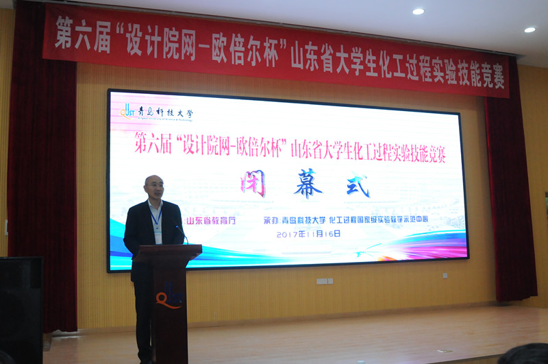 11月16日上午,“设计院网-欧倍尔杯”第六届山东省大学生化工过程实验技能竞赛闭幕式在四方校区讲学厅举行,副校长陈克正,专家组组长、山东科技大学博士生导师高军出席,闭幕式由学生处处长陈刚主持。