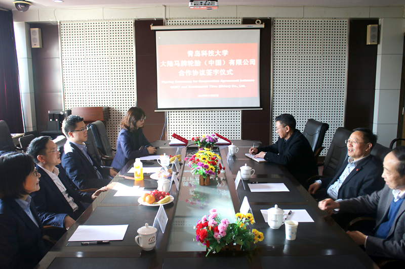 11月27日下午,青岛科技大学与大陆马牌轮胎(中国)有限公司合作协议签字仪式在中德科技学院会议室举行。学校党委副书记李庆领、德国大陆马牌轮胎(中国)有限公司合肥工厂总经理王小骥、财务总监周渊、人力资源部总监孙怡、中德双元工程学院常务副院长岳学海、中德双元工程学院校企合作中心主任赵树高教授出席签约仪式。