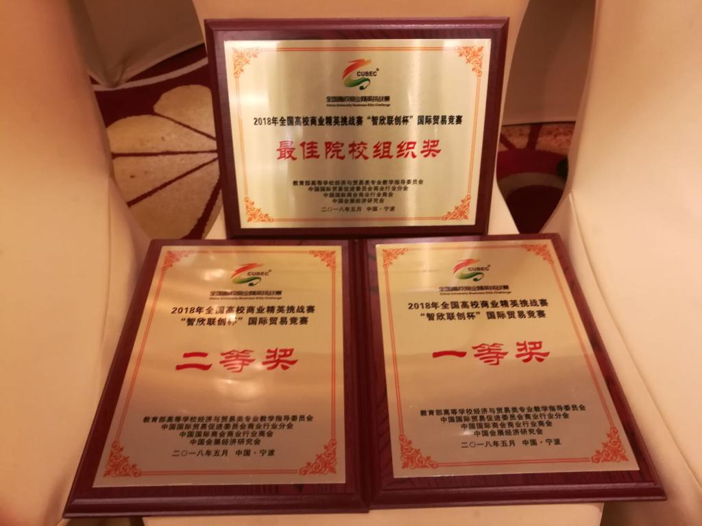 5月24日至28日,2018年全国高校商业精英挑战赛“智欣联创杯”国际贸易竞赛与经贸会展竞赛在宁波国际会展中心举行。经管学院国际经济与贸易专业学生组成的2支参赛队伍,分别获得一等奖和二等奖,学校获评最佳院校组织奖。
