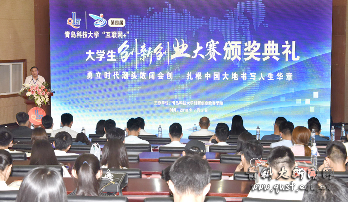 勇立时代潮头敢闯会创,扎根中国大地书写人生华章。7月3日,由创新创业教育学院主办的第四届青岛科技大学“互联网+”大学生创新创业大赛决赛暨颁奖典礼在崂山校区第一报告厅举行。副校长陈克正出席典礼并为大赛金奖获奖代表颁发了奖牌,参加仪式的还有青岛市大中专毕业生就业指导中心主任、市大学生创业服务中心主任、青岛创业大学创业办主任褚庆柱,青岛托普集团总经理王敏燕,学校教务处、研究生院、团委负责人,各学院学工办主任、参赛项目指导教师及学生代表参加了活动。颁奖典礼由学生处处长陈刚主持。