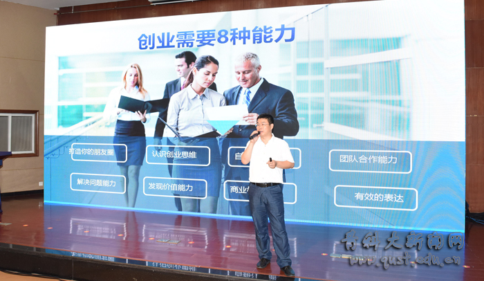 颁奖典礼上,评委代表青岛托普集团总经理王敏燕女士公布比赛获奖名单,第三届中国“互联网+”大赛铜奖获得者、青岛科技大学2018届毕业生杨奉儒同学进行现场路演展示,褚庆柱、王霞、吴俊飞、王锋业分别为优秀选手及优秀组织单位颁奖。颁奖典礼结束后,褚庆柱现场作了题为《创业思维构建与方法论》的报告,从多个维度与现场师生进行了创新创业碰撞与互动。
