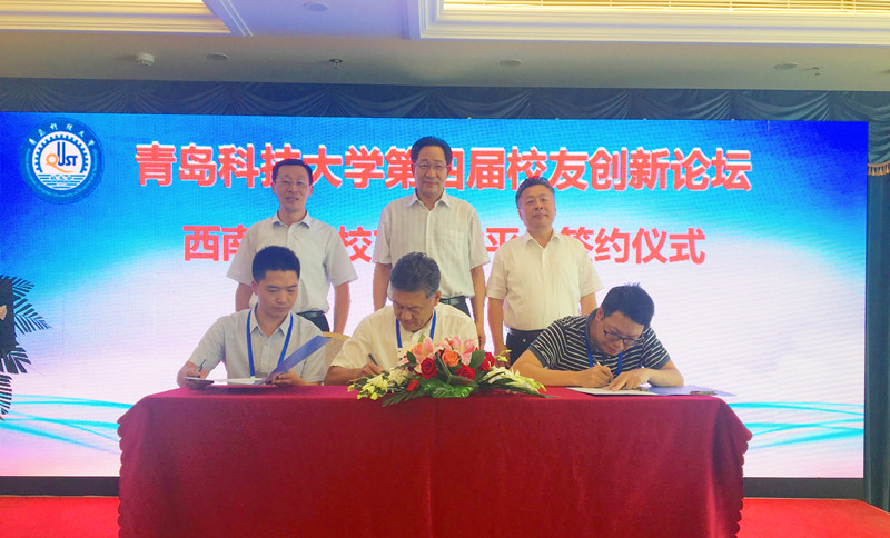 会上,举行了青岛科技大学西南地区校友协作平台签约仪式。在学校校友总会的指导下,重庆、四川、贵州校友会联合成立了校友协作平台,进一步探索促进地区校友会合作与发展的新途径。最后,青岛校友会与上海校友会进行了校友创新论坛的会旗交接仪式,第五届校友创新论坛将由上海校友会承办。
