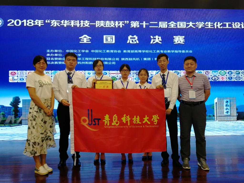 近日,由教育部高等学校化学工程与工艺专业教学指导分委员会、中国化工学会、中国化工教育协会主办的第十二届全国大学生化工设计竞赛全国总决赛在湖南长沙中南大学举行。青岛科技大学化工学院化学工程与工艺2015级学生王绍光、张萌、周鹏、宋震、吴郑欣组成的“Gems Quest”团队获得华北赛区特等奖,进入全国总决赛。决赛中,“Gems Quest”团队凭借出色的发挥和优异的表现,最终获得全国一等奖。