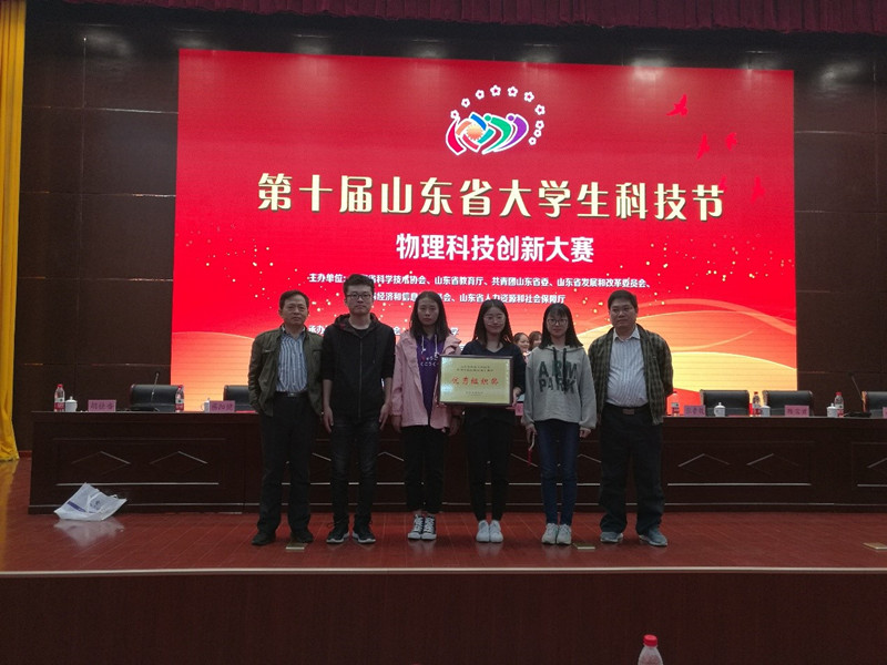 近日,山东省第十届大学生科技节“南激光杯”物理科技创新大赛在山东师范大学长清湖校区举行。来自山东省内32所高校的300余名师生参加了决赛,青科大共有4组作品参加本次大赛并取得了优异成绩,获一等奖2项、二等奖2项。其中于燚、索嘉成、马云飞等同学的作品《定量研究非磁性旋转导体盘阻尼效应的实验演示装置》和崔玉倩、孟家锋、崔春祥等同学的作品《水槽式洛伦兹力演示实验装置》获得山东省一等奖;徐召来、傅雅君、李雨竹等同学的作品《空气磁导率的测定》和张志远、苗一凡、徐建一等同学的作品《新型导热系数教学实验测量仪器演示仪》获得二等奖。杨清雷老师获得“优秀指导教师”称号,学校获得“优秀组织奖”。