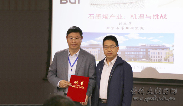 20日下午,中国科学院院士刘忠范受聘青岛科技大学生态化工国家重点实验室培育基地学术委员会顾问委员。副校长吕万翔出席仪式并为刘忠范院士颁发聘书。
