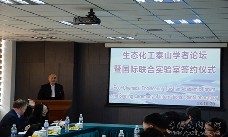 10月20日,生态化工泰山学者论坛暨国际联合实验室签约仪式在青岛科技大学四方校区CCE大楼706学术报告厅举行。中国科学院院士、北京大学教授刘忠范,新加坡南洋理工大学教授张华等二十多位国内外知名专家学者及学校领导、师生代表参加了本次会议。副校长陈克正致欢迎辞,副校长吕万翔出席签约仪式,泰山学者优势特色学科人才团队领军人王丹主持开幕式,并组织参会专家学者作了16场高质量、高水平的学术报告。