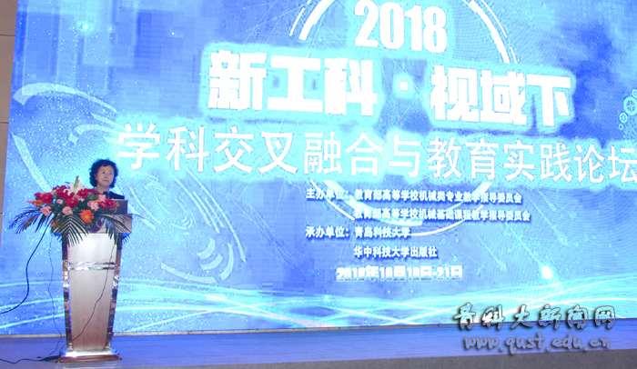 10月20日,由教育部高等学校机械类专业教学指导委员会、教育部高等学校机械基础课程教学指导委员会主办,青岛科技大学机电工程学院和华中科技大学出版社共同承办的2018“新工科”视域下学科交叉融合与教育实践论坛在青岛开幕。青岛科技大学党委书记、校长马连湘,党委副书记张元利,副校长张淑华应邀出席会议,中国工程院院士段宝岩,大连理工大学、华中科技大学、吉林大学、东南大学、西安交通大学、长春工业大学等高校的多位专家作了精彩报告,来自全国106所高校的240多名专家学者及青科大机电学院教师代表参加了论坛。与会专家学者围绕“新工科视域下学科交叉融合与教育实践”这一主题展开主题报告演讲和深入研讨。张淑华主持开幕式及主题报告环节。