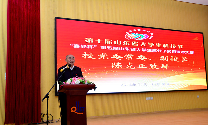 11月7日下午,由省科协、省教育厅、团省委、省发改委、省经济和信息化委、省人力资源社会保障厅主办,青岛科技大学承办的“赛轮杯”第五届高分子实用技术大赛闭幕式暨颁奖典礼在四方校区讲学厅举行,副校长陈克正出席并讲话。