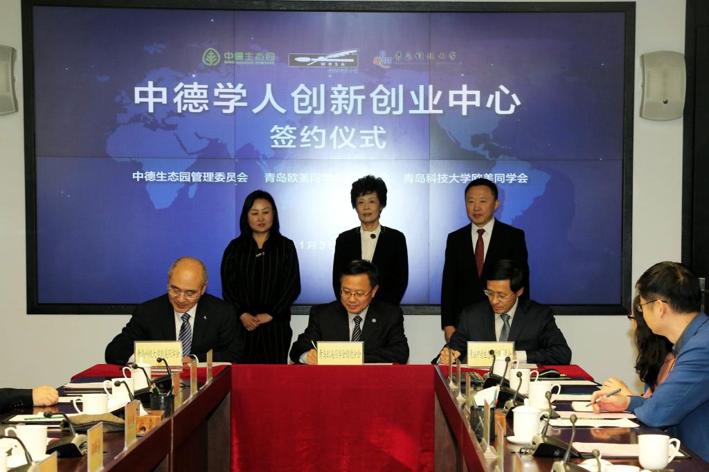 日前,中德学人创新创业中心在中德生态园成立。青岛欧美同学会留德分会、青岛科技大学欧美同学会、青岛中德生态园管理委员会三方签署了中心共建合作协议并揭牌。