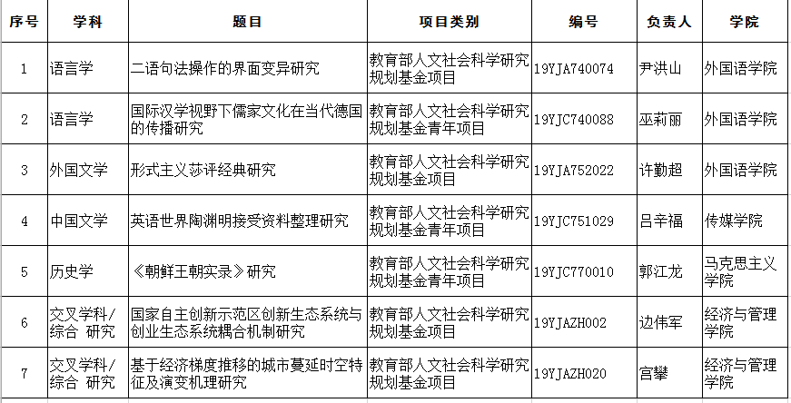 近日,教育部社科司公布了2019年度教育部人文社会科学研究一般项目立项名单。我校7项目获准立项,在驻青所有高校中排名第三位。