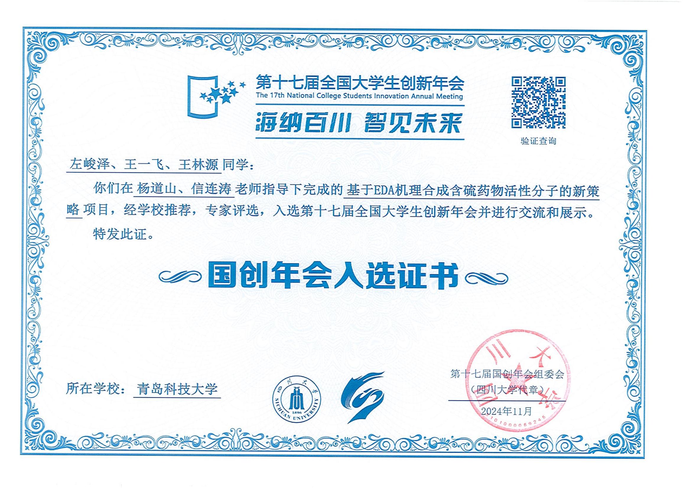 近日,第十七届全国大学生创新年会在四川大学举行。本届年会以“海纳百川·智见未来”为主题,包含创新学术论文交流、创新创业项目改革成果展示和创业推介项目交流三个主题活动,全面总结交流“国创计划”取得的主要成果、典型经验和育人成效,深入研讨改革创新的对策措施。我校1个国创项目论文成果作为山东省属院校6个项目之一入选学术论文交流。