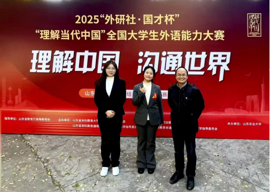 近日,2025“外研社•国才杯”“理解当代中国”全国大学生外语能力大赛山东省赛分别在山东师范大学和山东农业大学举行。赛事设置综合能力赛、演讲、笔译和口译四个方向。学校选拔10名学生参赛,获奖数量和质量取得双突破。