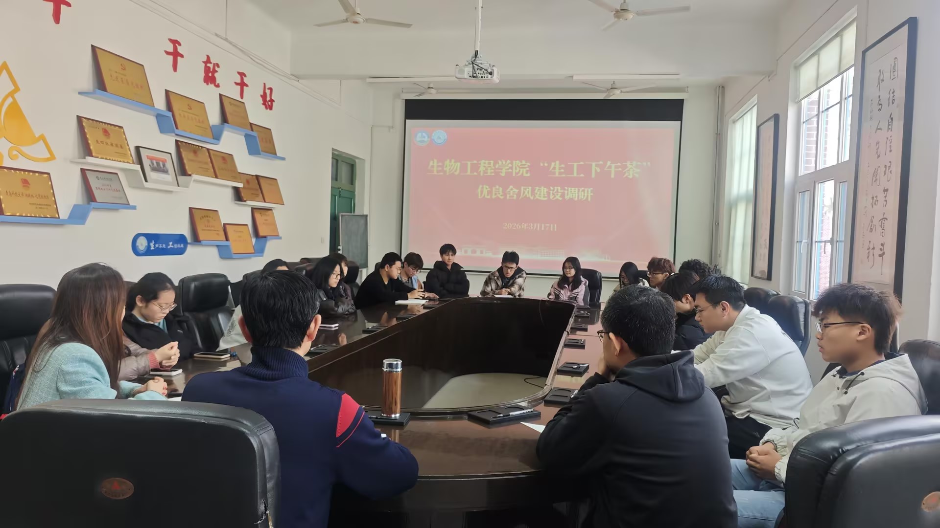 为深入了解学生需求,切实解决学生在生活与学习中遇到的实际问题,进一步加强宿舍文明与教风学风联动建设,生物工程学院于3月17日下午连续举办两场“生工下午茶”专题座谈会,分别聚焦宿舍管理与舍风建设以及学风建设与课堂体验。学院党委书记周宪锋、党委副书记兼副院长刘浩、副院长李昉分别出席相关座谈,与各年级学生代表进行了面对面、心贴心的深入交流。
