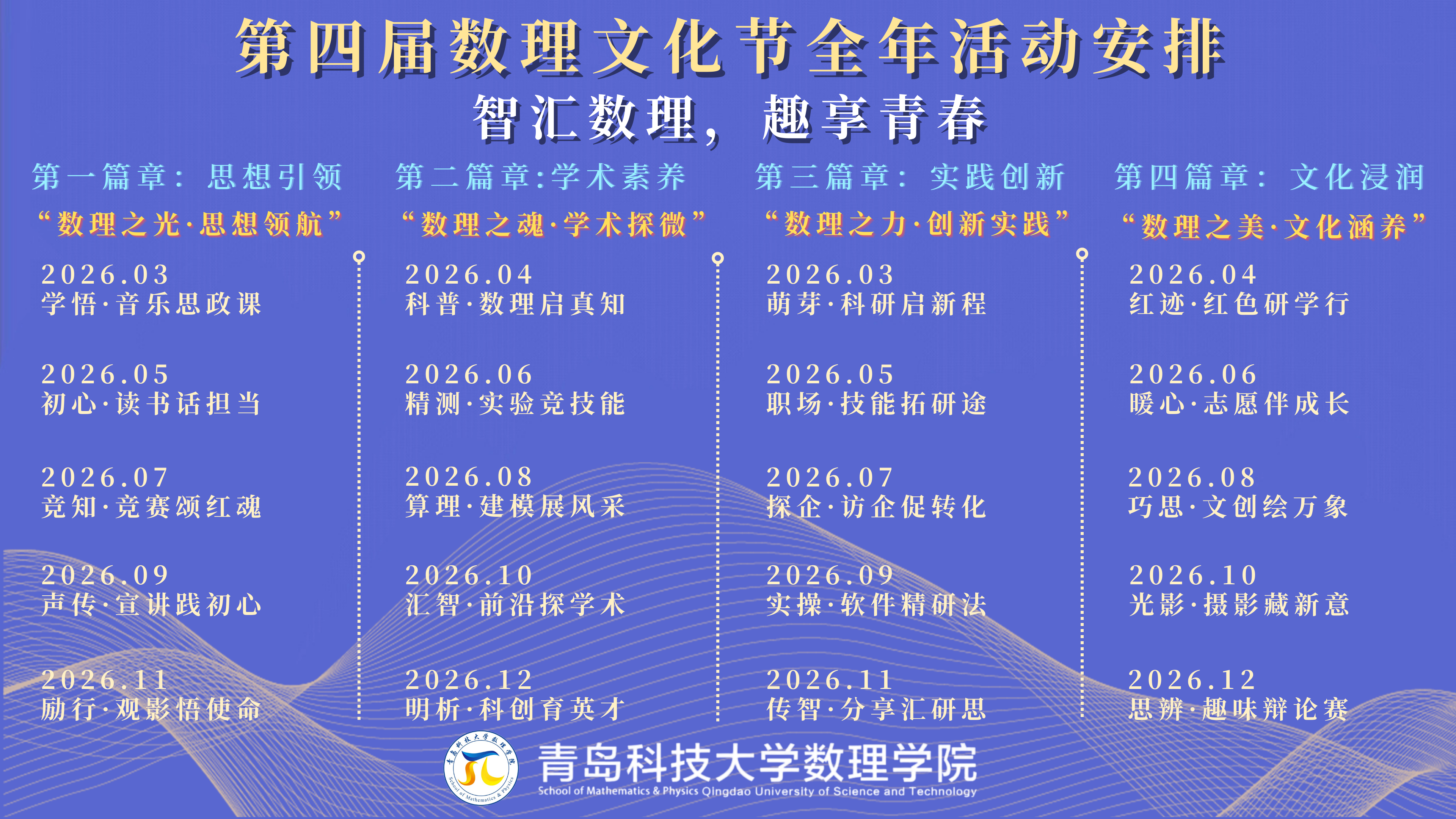 3月17日下午,数理学院第四届数理文化节开幕式在崂山校区第三报告厅举行。学院党委书记刘保成、院长杨树国、党委副书记李雯雯、系主任、班主任、辅导员,以及2024级、2025级全体学生参加开幕式。