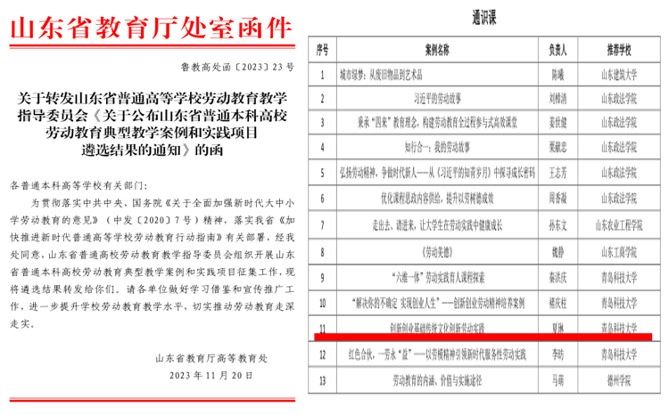 山东省普通本科高校劳动教育典型教学案例:创新创业基础传统文化创新劳动实践