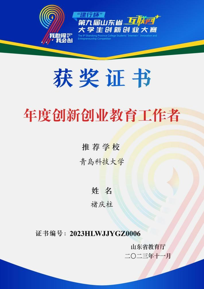 第九届山东省“互联网+”大学生创新创业大赛年度创新创业教育工作者