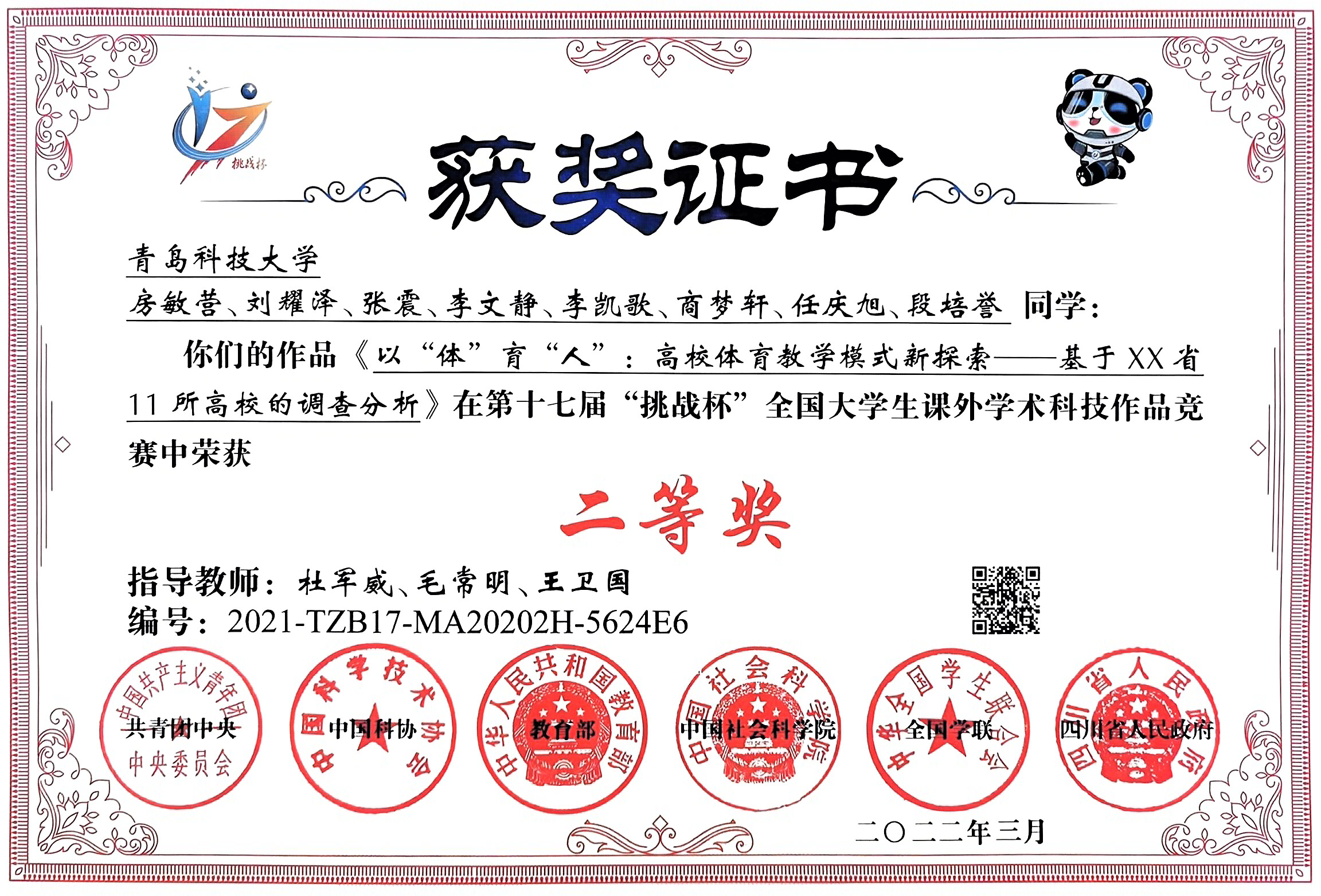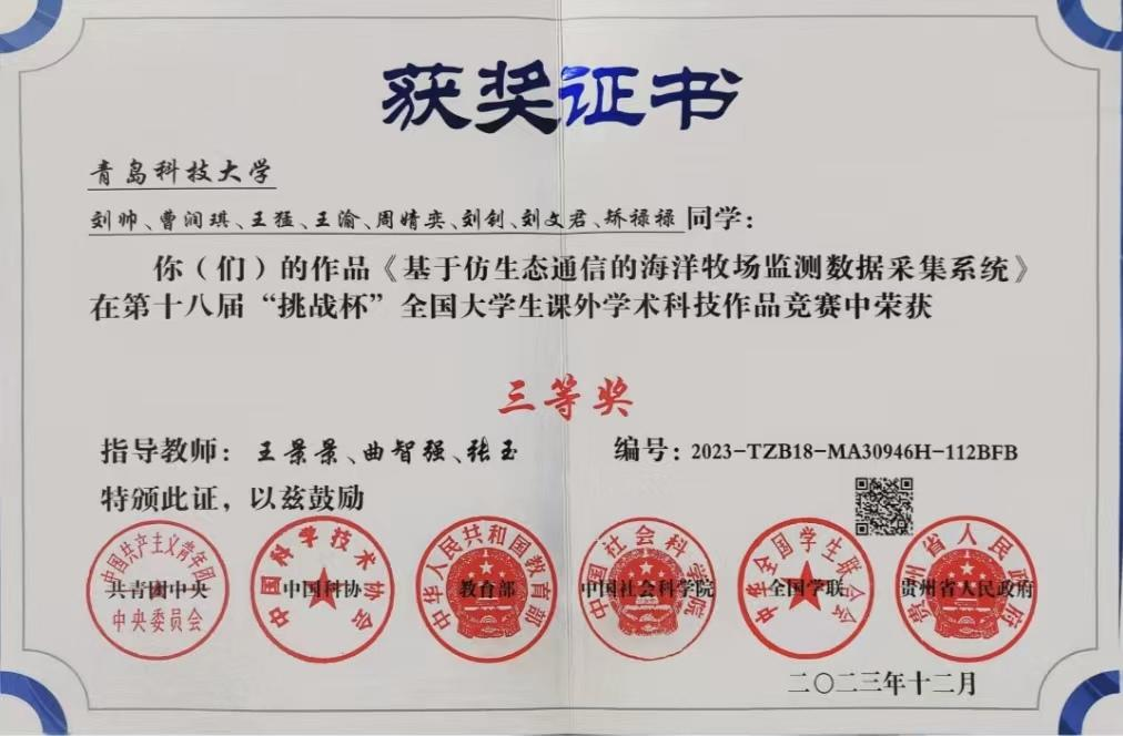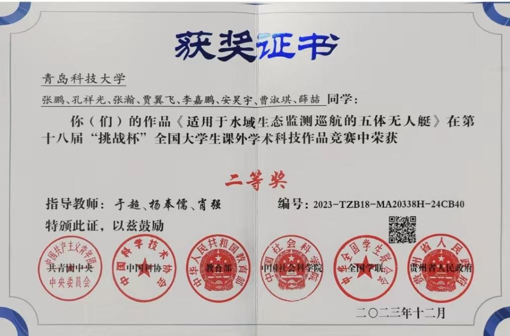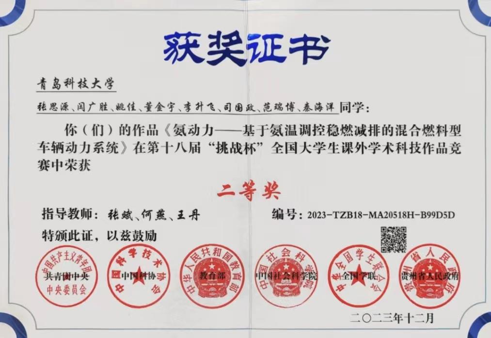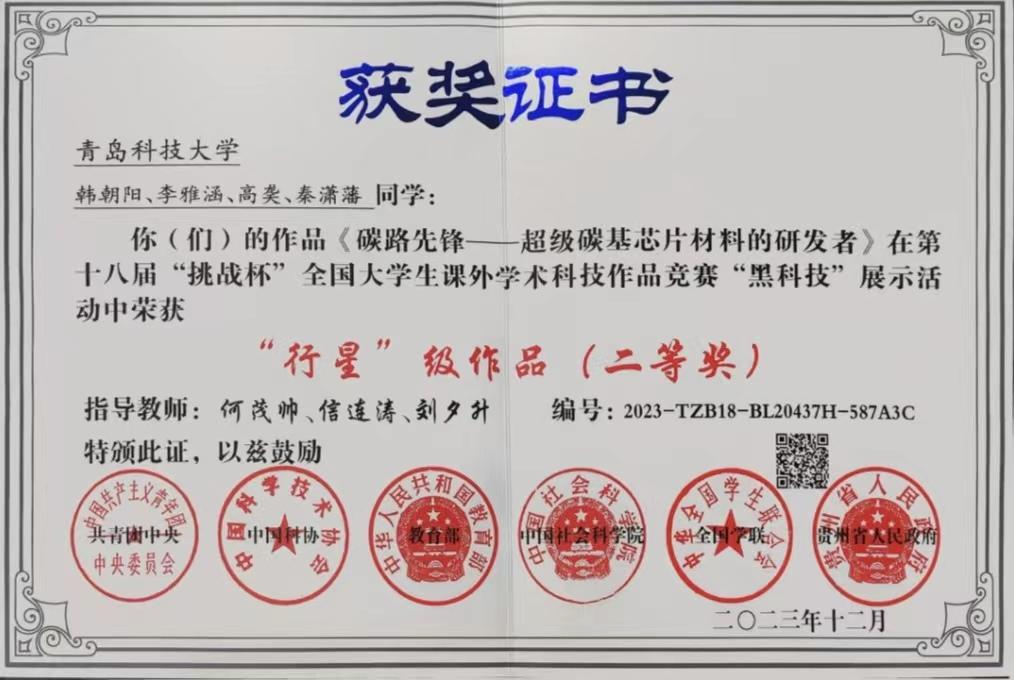 2021-2024“挑战杯”全国大学生课外学术科技作品竞赛国家级一等奖1项、二等奖4项、三等奖2项