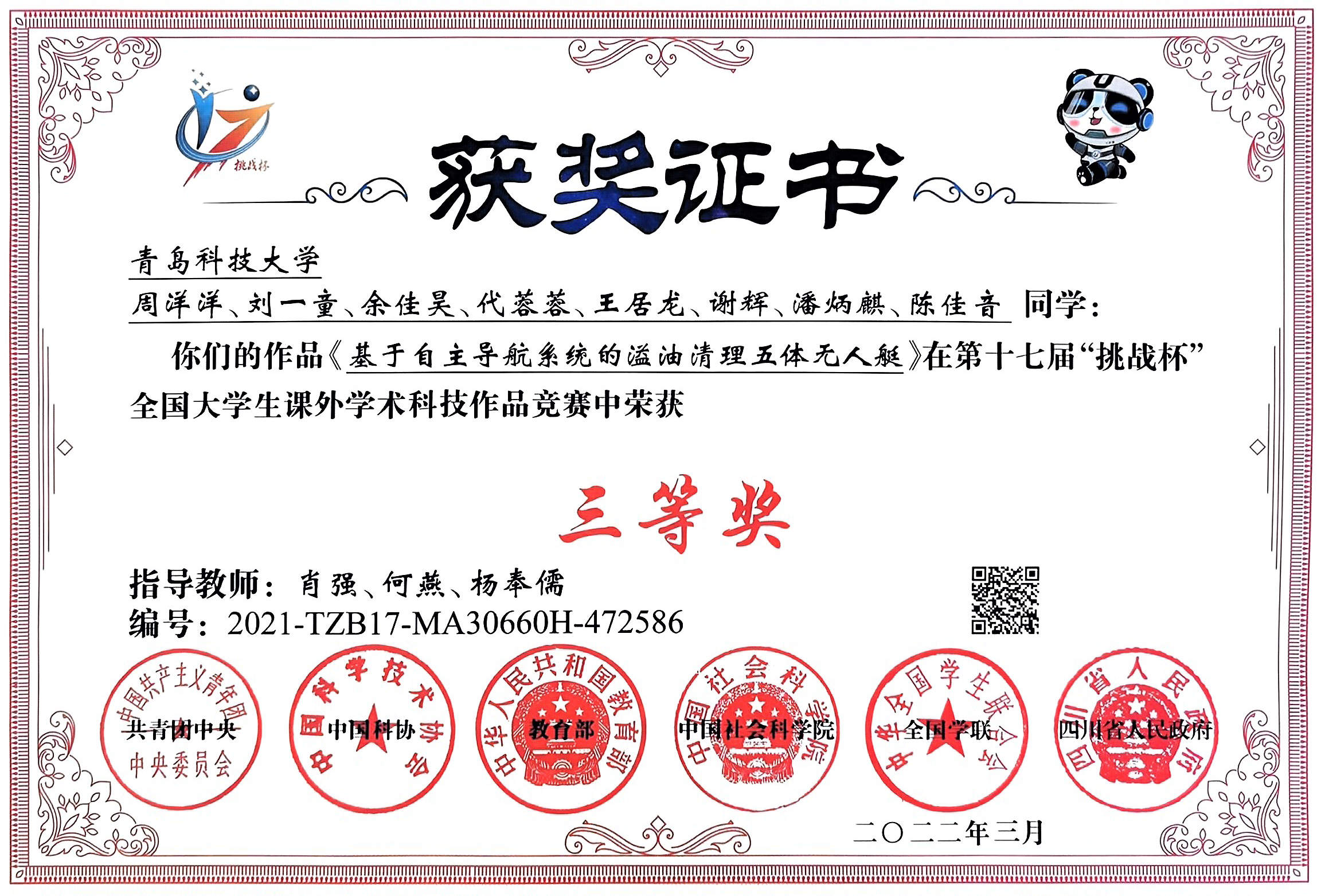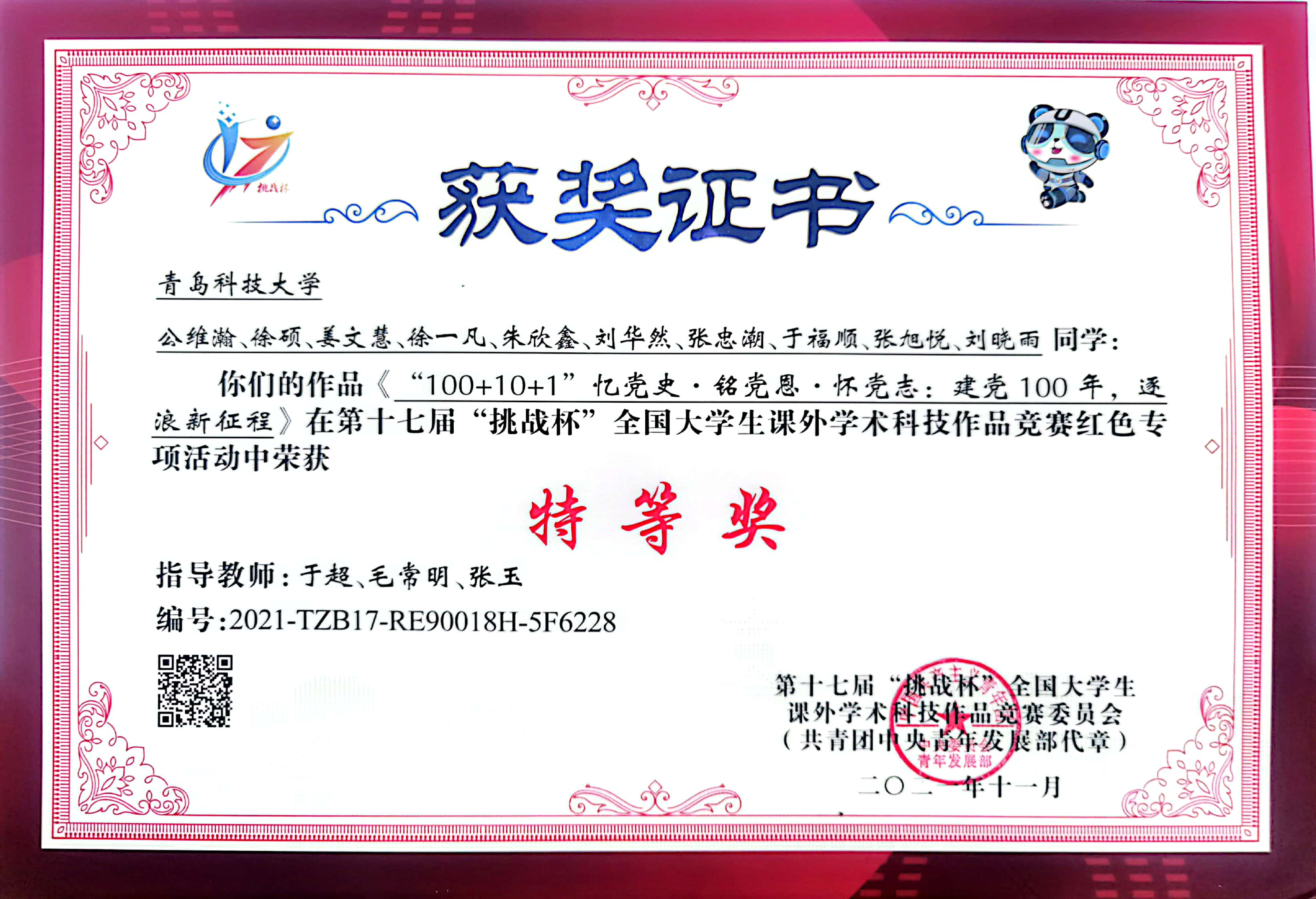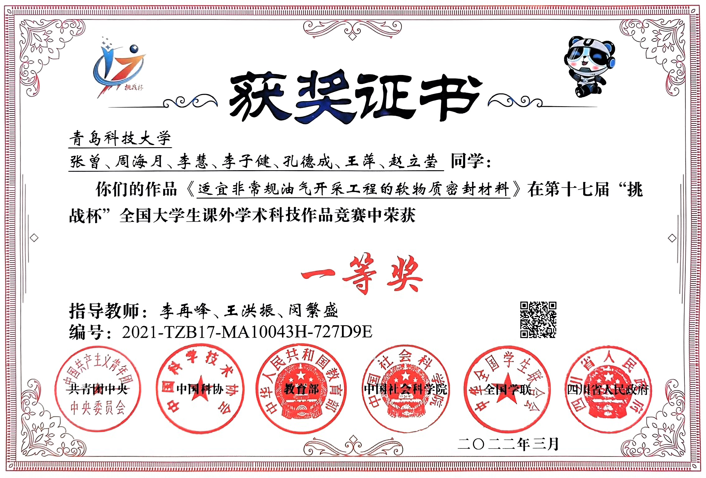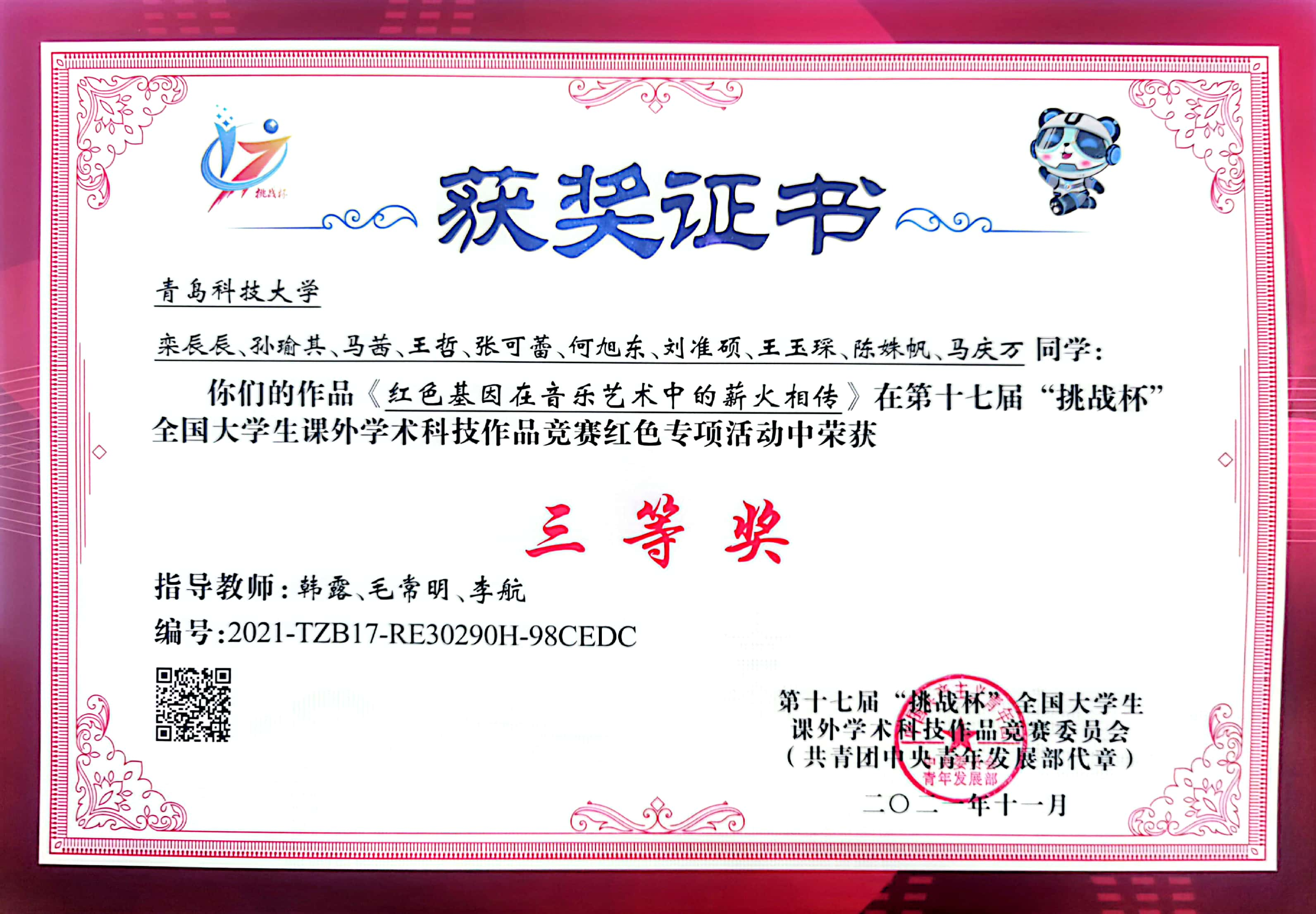2021-2024“挑战杯”全国大学生课外学术科技作品竞赛国家级一等奖1项、二等奖4项、三等奖2项