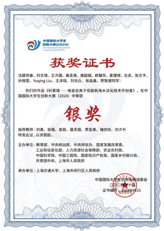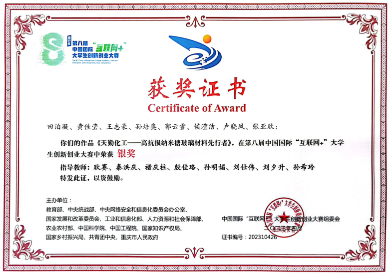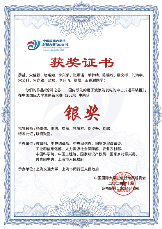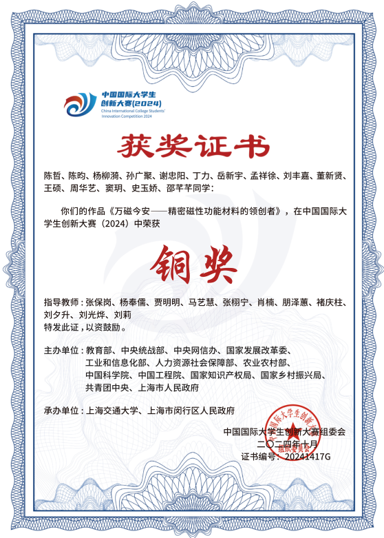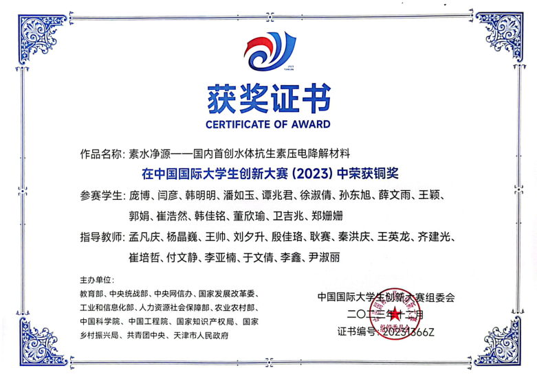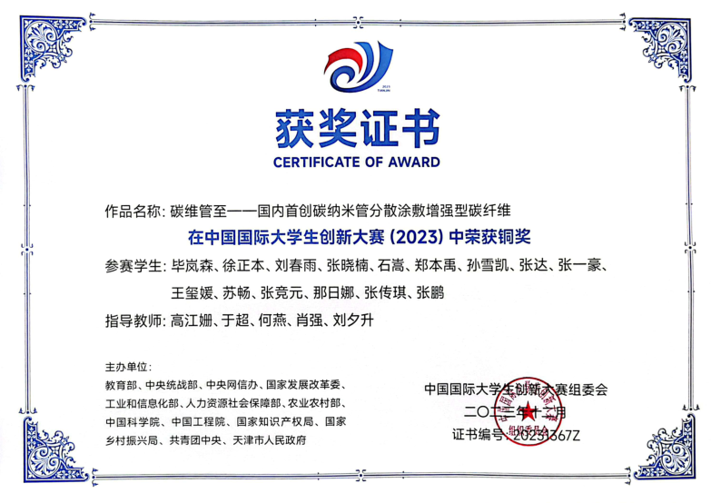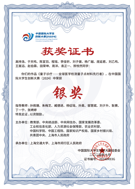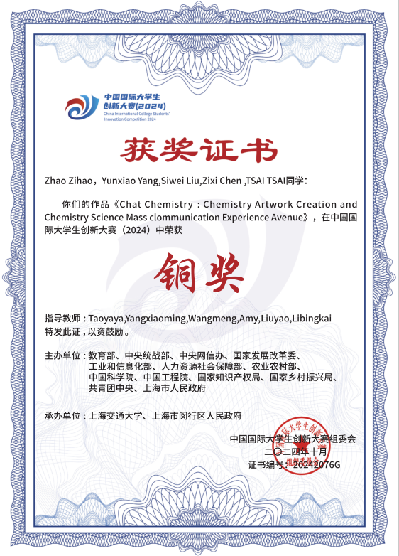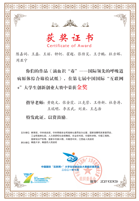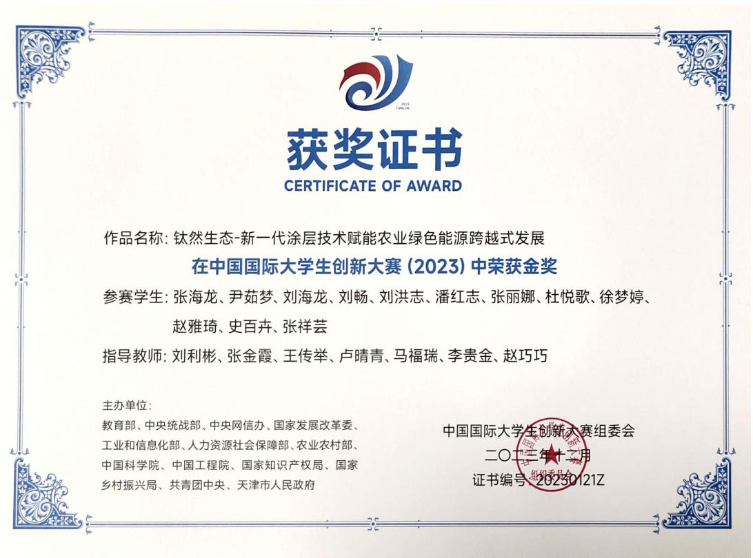 2021-2024中国国际大学生创新大赛国家级金奖5项、银奖14项、铜奖12项