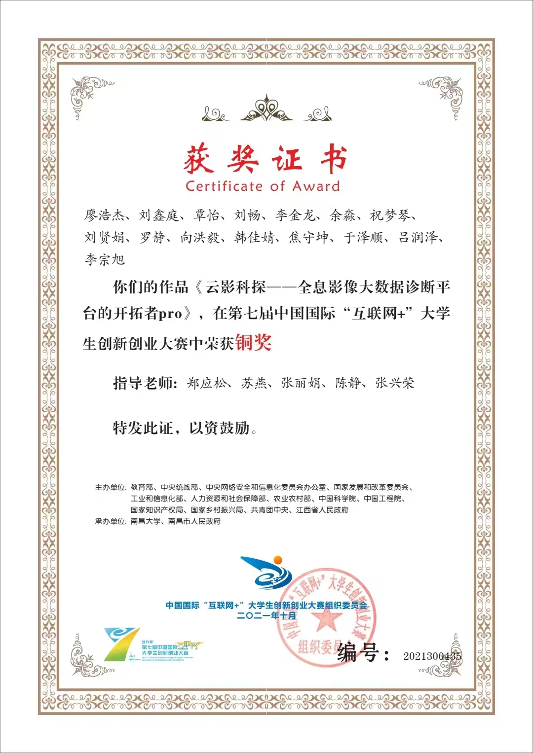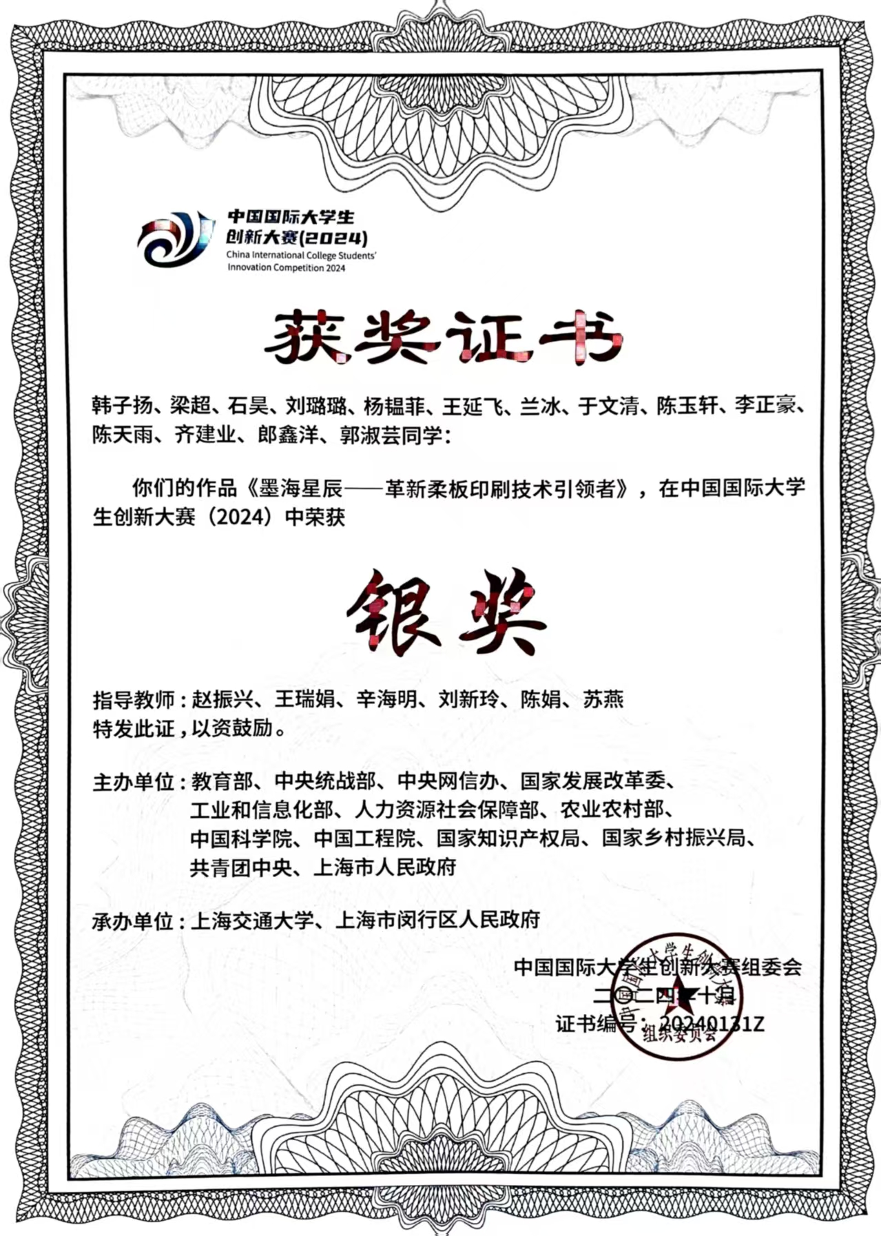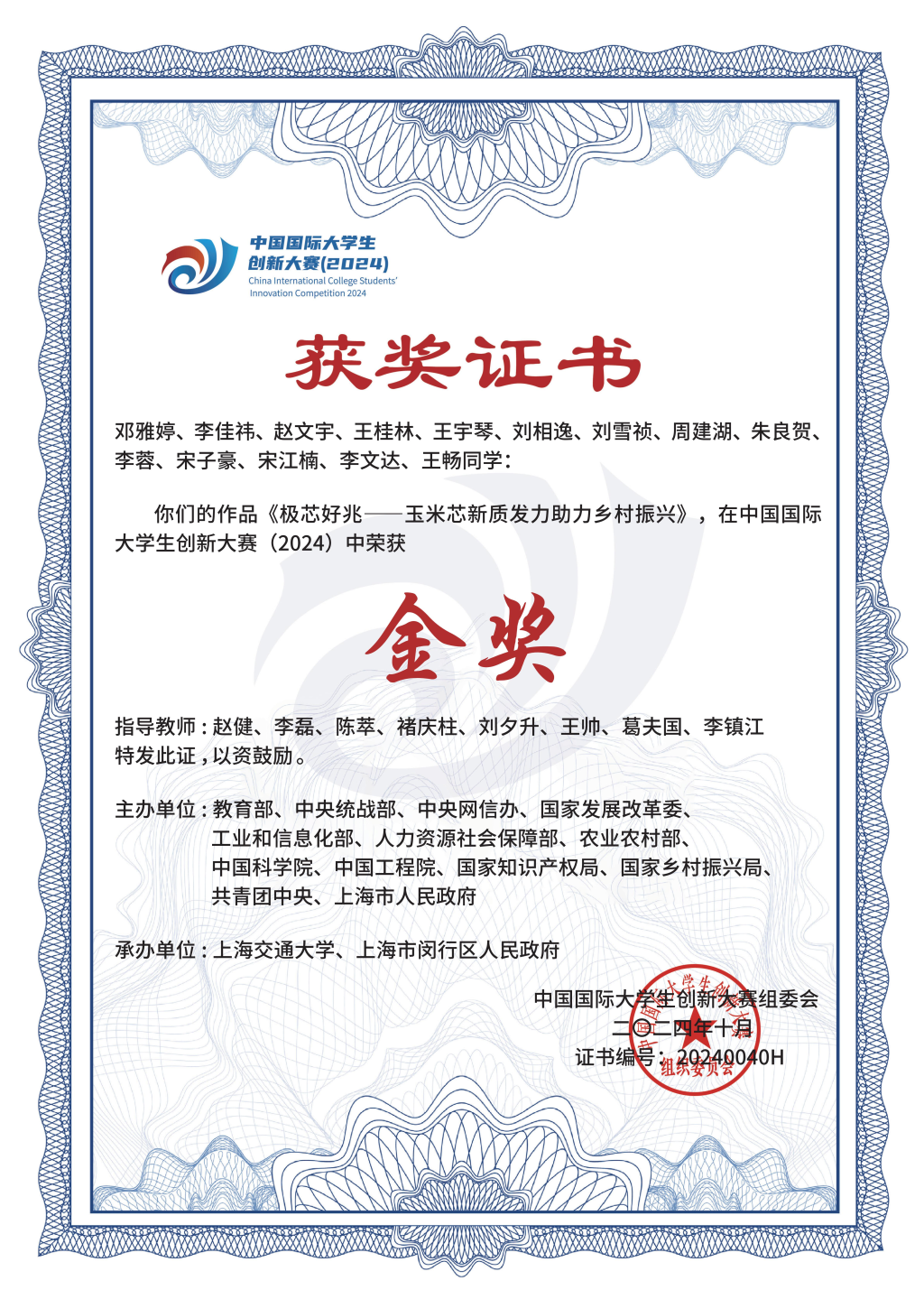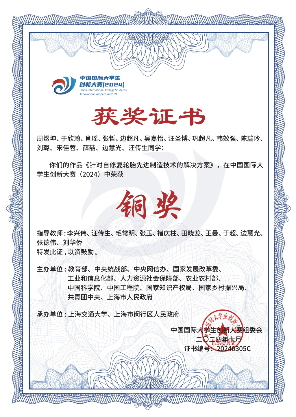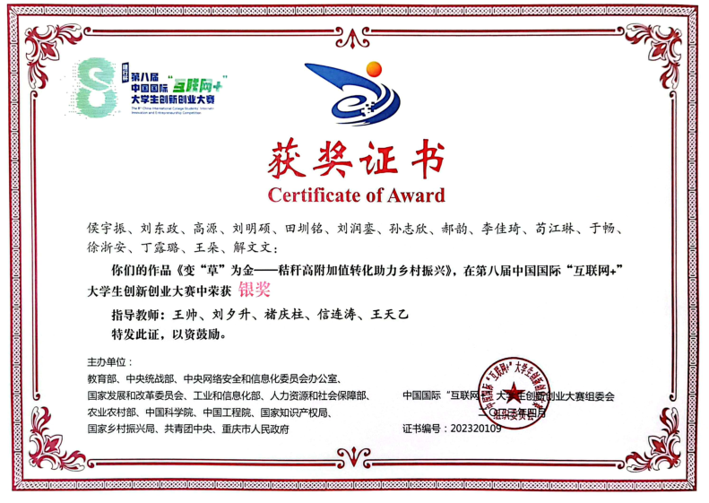2021-2024中国国际大学生创新大赛国家级金奖5项、银奖14项、铜奖12项